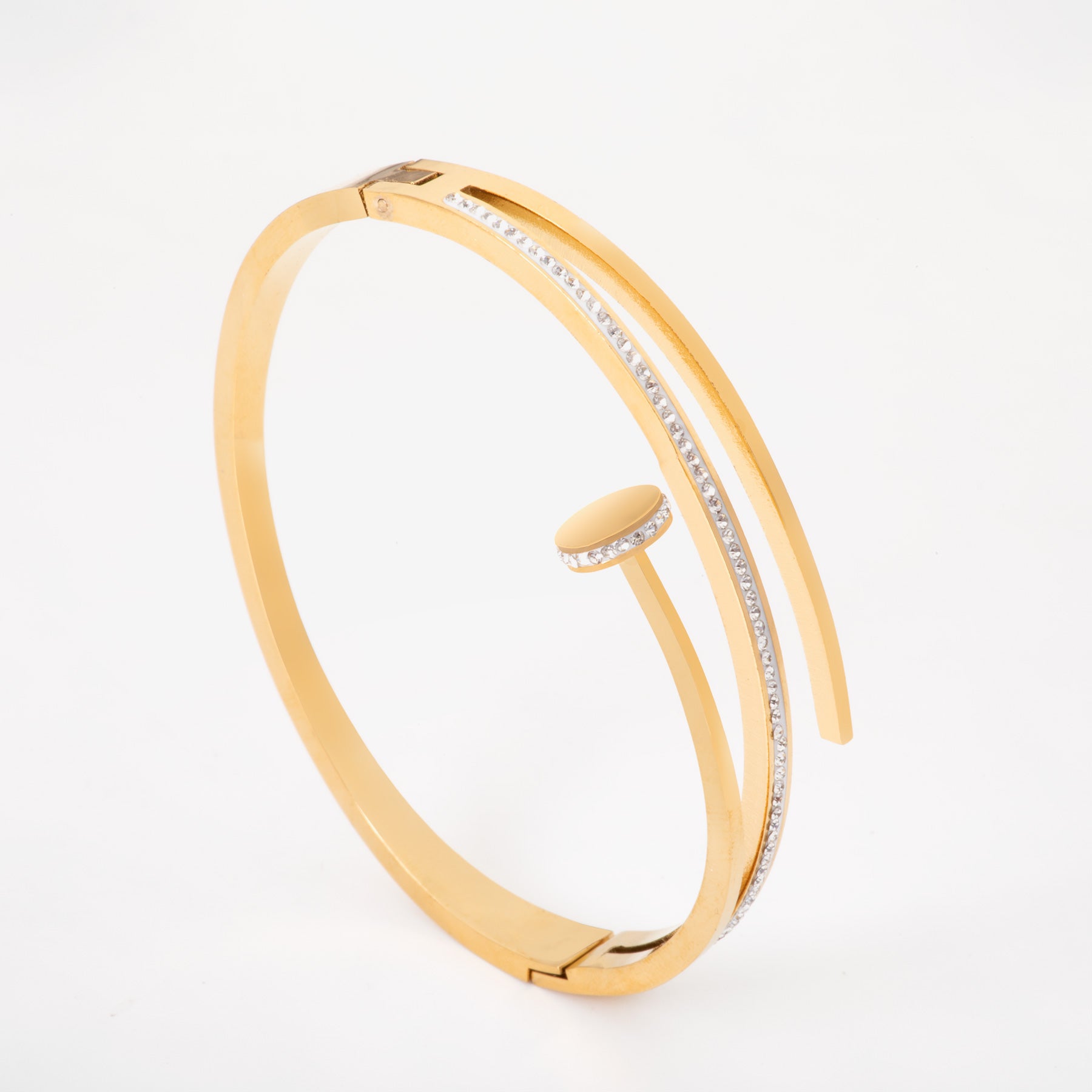 Introducing the Nora Bracelet, a stunning piece of jewelry designed to turn heads. Made with high quality, durable materials including vacuum-based 18k gold plating and stainless steel, this bracelet is not only beautiful and elegant but also safe for all skin types. Perfect for a weekend party or a casual day at the office, this bracelet is sure to add a touch of glamour to any outfit.