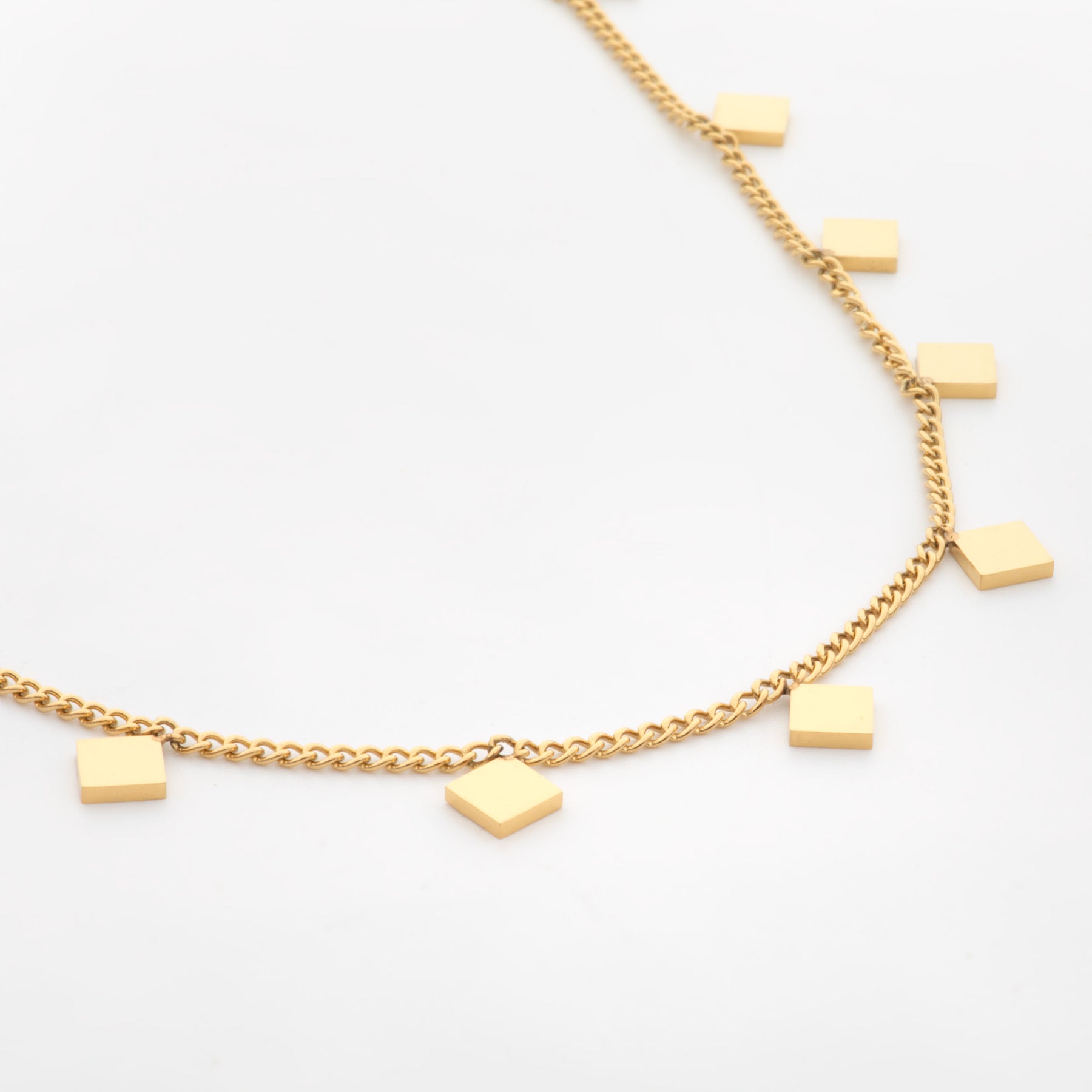 Elevate your style with our Nuria Charms Necklace. Not only is it beautiful and elegant, but also antitarnish and hypoallergenic. Perfect for a vacation or a Friday at work, it's coated with a high quality vacuum 18K gold coating to ensure it's safe for your skin. Made from stainless steel, it's a must-have for any jewellery collection.